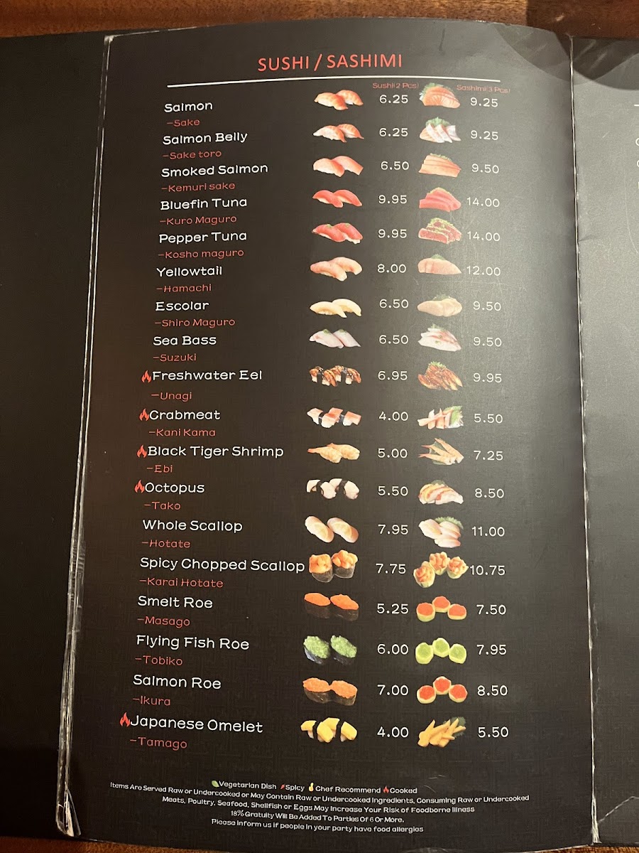 5 pcs Salmon Nigiri or Salmon Sashimi; & choice of Salmon Roll or Spicy Salmon Roll