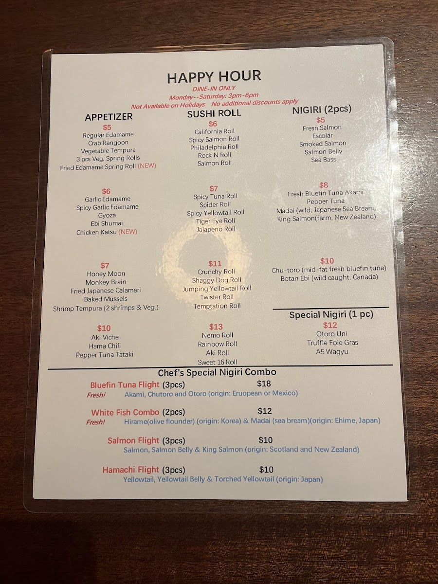 9 pieces of chef's choice nigiri & spicy tuna roll.