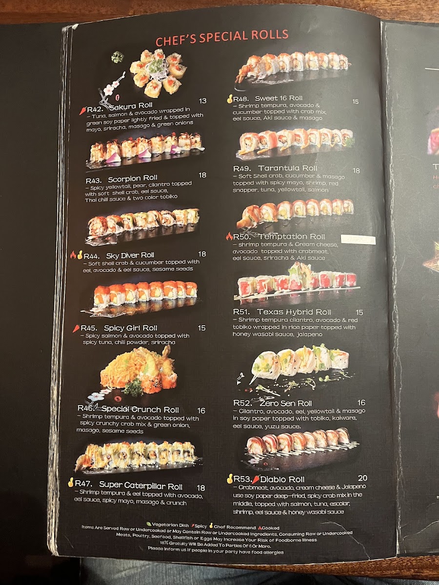 Cooked. Chef recommended. Shrimp tempura topped with crabmeat, spicy mayo & eel sauce. .